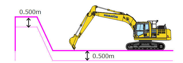Ich möchte bei der Verwendung eines Komatsu iMC-Baggers die Konstruktionsfläche versetzen.